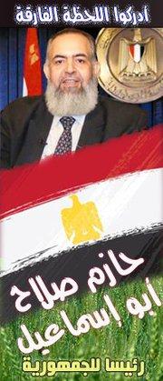 بسم الله الرحمن الرحيم السلام عليكم ورحمة الله وبركاته من هو حازم صلاح أبو اسماعيل ؟ حازم صلاح أبو إسماعيل محمد حازم صلاح ابو اسماعيل محمد عبد الرحيم ولد سنة 1961 م وهو من مواليد قرية بهرمس في القاهرة وهو نجل الشيخ صلاح أبو إسماعيل أحد علماء الأزهر الشريف وداعية إسلامي معروف وأحد أعلام جماعة الإخوان المسلمين، ونشأ في أسرة ملتزمة، التحق بكلية الحقوق ورغم تخرجه من الأوائل علي دفعته في كلية الحقوق رفض العمل في القطاع الحكومي وفضل العمل الحر . النشاط السياسي انخرط سياسيًا في الدراسة الثانوية ثم الجامعية وما بعدها في عدد من القضايا منها هضبة الأهرام وتوصيل مياه النيل لإسرائيل ومعاهدة السلام واتفاقية كامب ديفيد وتعديلات قوانين الأحوال الشخصية ومقتل سليمان خاطر وعلاء محي الدين وعبد الحارث مدني وتجميد حزب الوفد وحزب العمل وتزوير انتخابات 1979 ومقاومة اللائحة (الجديدة وقتها) لاتحاد طلاب الجامعات ومصادرات جريدة الأحرار وغيرها . له بحث جامعي معد سنة 1986 لنيل درجة الماجستير في القانون الدستوري كان موضوعه "حق الشعوب في مقاومة الحكومات الجائرة بين الشريعة الإسلامية والقانون الدستوري " . اشترك دون عضوية حزبية في إعداد برنامج حزب الوفد واللائحة التنظيمية لحزب الأحرار وندوات أحزاب الأحرار والتجمع والوفد ومؤتمراتها عبر شخصيات من قيادات هذه الأحزاب وتتابع باستمرار اهتمامه بالقضايا السياسية العامة امتدادا لذلك، وتولى الإدارة الكاملة بكافة وجوهها لانتخابات مجلس الشعب في دائرة والده 1984، 1987 والخطابة في مؤتمراتها الانتخابية كما اشترك في إدارة المعركة الانتخابية لانتخابات أخرى سنة 2000 وبسبب نشاطه العام كان محلا ضمن الهجوم على معارضين لهجوم عليه بالتبعية في خطاب لرئيس الجمهورية وأحد وزراء الداخلية عام 1981 وعام 1988، ودخل معارك متعددة دفاعا عن عدد ممن يختلف معهم عقائديا وسياسيا في مواجهات متعددة، كما كان منذ تخرجه عضوا في جمعية الاقتصاد السياسي الشهيرة ناشطا. وقد حرص عبر عشرين سنة على التواجد في الولايات المتحدة في زيارة لعدة أسابيع أثناء جميع الانتخابات الرئاسية الأمريكية ما عدا الأخيرة لمتابعتها تفصيلا عن قرب ومتابعة المناظرات التي كانت تجري فيها بين المرشحين الرئاسيين . تزوير انتخابات مجلس الشعب ضده رشح الإخوان المسلمين في مصر حازم في انتخابات مجلس الشعب المصري عام 2005 في دائرة الدقي وكانت منافسته الرئيسية الوزيرة أمال عثمان وقد أعلنت النتائج بفوز حازم وتمخضت النتائج الرسمية عن إعلان فوز أمال عثمان الوزيرة السابقة وأستاذ القانون وقد اتهم الإخوان الحكومة بوجود تلاعب في النتائج . وقد حدث الأمر ذاته في انتخابات 1995 وحصل في كل منهما على حكم قضائي متميز رصد صورة التزوير الخاصة في كل منهما وقضى في كلتا المرتين بإثبات نجاحه بأغلبية كبيرة جدا من الأصوات ثم قاطع انتخابات 2010 ترشحه لرئاسة الجمهورية حازم أبواسماعيل فى مؤتمر جماهيرى حاشد أعلن أبو إسماعيل الترشح لانتخابات رئاسة الجمهورية 2011 في 24 مايو 2011 الدوافع بعد سقوط نظام حسنى مبارك يوم 11 فبراير نتيجة ثورة 25 يناير 2011، يقول أنّه وجد الرؤى المطروحة على الساحة ما هي إلا أفكار متناثرة وليس مشروع متكامل لبناء دولة بمنهجية ورؤية شاملة فقرر عرض رؤيته كمرشح للرئاسة بمرجعية إسلامية واضحة. يرى أنّ من ضمن شروط المرشح أيضا أن يكون قد تغلغل في وزارات وهيئات الدولة ويعلم طرق التحايل على القانون التي كانت تدار بها المصالح الحكومية من مستوى ديوان رئاسة الجمهورية حتى أقل مستوى حتى يستطيع وضع خطط وإجراءات محكمة لمنع هذا التلاعب . عن معارضته لنظام مبارك أوضح أنه لم يكن مبارك ليسمح للمعارضين له أن يظهروا في الاعلام تحت الرقابة الشديدة. والمعارضات في الأغلب كانت هزلية من باب الديمقراطية والحريات الزائفة. لكنه منذ 2008 أثناء الحرب على غزة دعا الناس في كل محاضراته أن يركزوا على فكرة الاعتصام في الشارع دون عودة للمنازل لإسقاط الأنظمة الديكتاتورية الر