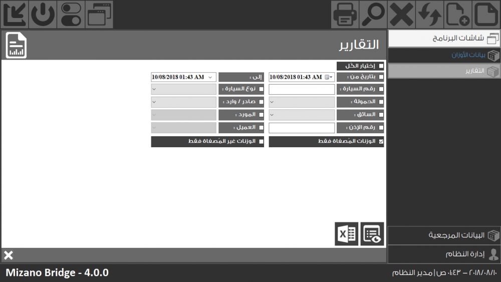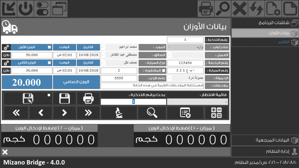 الهدف الرئيسي للبرنامج هو إلتقاط الوزن مباشرة من الميزان وتسجيله بقاعدة البيانات الخاصة بالبرنامج بدون التدخل اليدوي من موظف الوزن مما يضمن عدم حدوث اي خطأ اثناء تسجيل الوزن ويضمن ايضا عدم التلاعب مع احتساب فارق الوزن الفارغ و القائم وتسجيله مباشرة بقاعدة بيانات البرنامج مما يوفر الوقت ويمنع الخطأ في احتساب صافي الوزن بالاضافة الى طباعة هذه البيانات بعد الانتهاء من عملية الوزن ثم حفظها في قاعدة بيانات البرنامج لحين استرجاعها مرة آخرى وإستخراج التقارير اللازمة عن تلك الوزنات.