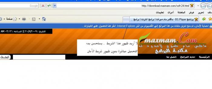 يعطيك الف عافية اخي الكريم الآن لدي استفسار آخر عندما اقوم بتحميل اي برنامج من المكتبة تفتح لي صفحه جديده ويظهر لي الشريط الأصفر أعلى المتصفح الخاص بالامان ولا يتم التحميل حتى اضغط على هذا الشريط واعمل سماح التنزيل اريد ان يبدأ التحميل بدون ظهور شريط الأمان هذا مباشرة اول ماضغط تحميل يحمل على طول وهذه صوره لكي تفهم قصدي اكثر -