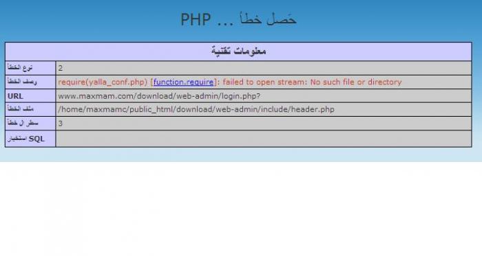 ظهرت لي مشكلة جديدة مؤخرا في سكربت البرامج الذكية حين افتح الصفحة الرئيسية تطلع لي رسالة خطأ خطأ خادم داخلي HTTP 500 وحين اذهب إلى لوحة تحكم الاسكربت تطلع لي هذه الرسالة رابط رئيسية البرامج http://www.maxmam.com/download رابط لوحة التحكم http://www.maxmam.com/download/web-admin/ ارجو الرد باسرع وقت ممكن -