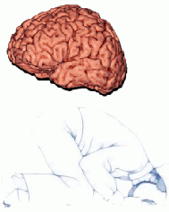 6. الدماغ يتوضأ في اليوم والليلة خمس مرات يقول تعالى في محكم الذكر: (حَافِظُوا عَلَى الصَّلَوَاتِ وَالصَّلَاةِ الْوُسْطَى وَقُومُوا لِلَّهِ قَانِتِينَ) [البقرة: 238]. هل تعلمون أن الدماغ في الوضع الجانبي له كأنه رجل وهو ساجد !! وهذا الدماغ يتوضأ في اليوم والليلة خمس مرات! هل تشعر بثقل الدماغ؟ هناك سائل النخاع الشوكي، سائل النخاع الشوكي الذي يوجد تحت الأم.. غشاء الأم.. العنكبوتية، الدماغ يحاط بثلاثة أغشية وتوجد بين هذا الأغشية سائل النخاع الشوكي الذي يكون له وظيفة الحماية.. الحماية لهذا الدماغ، وأيضاً للتغذية واللي كما تقول: التبريد: كيف أن الماء يبرد السيارة في الراديتير، فالدورة سائل النخاع الشوكي CSF Fluidيدور في هذه المناطق في البطين من الدماغ وحوله ويقوم بالتغذية وبالحماية، لماذا؟ لأن الدماغ وزنه 1700 جرام، لا نشعر بوزنه، هل تشعر بثقل الدماغ الذي هو تقريباً حوالي كيلوين إلا ربع؟ من تقدير البارئ عزّ وجلّ إننا لا نشعر، لقد وزنوا الدماغ داخل الجمجمة فوجدوه 50 جرام، ووزنه الحقيقة.. الحقيقة حوالي –كما قلت- 1700 جرام، لأنه يطفو في سائل النخاع الشوكي، والقاعدة الفيزيائية تقول: "كل جسم يغمر في سائل يفقد من وزنه بقدر وزن السائل المُزاح". ولذلك لا نشعر بوزنه وثقله، وهذا من تقدير الباري عز وجل. فالسائل النخاع الشوكي يتولد من منطقة خاصة في الدماغ تسمى الظفرة الشبكية The corogy plaxisويدور في مساحاته ويخرج من منطقة أخرى كشبكة المياه في أي عمارة أو.. أو بيت، ويقوم بواجباته. وهذه الدورة تكون في اليوم والليلة خمس مرات بقدر الصلوات وقد ذكر الله الباري عز وجل الصلوات الخمسة. أيضاً كلمة الصلوات مذكورة في القرآن خمس مرات، ونحن نسجد على الفص الأمامي الذي فيه مراكز اتخاذ القرار لأننا في مفهوم المخالفة، المؤمن إذا ما يسجد ويعبد الله فإن ناصيته ستكون مصيبة صادقة. يقول تعالى: (قَدْ أَفْلَحَ الْمُؤْمِنُونَ (1) الَّذِينَ هُمْ فِي صَلَاتِهِمْ خَاشِعُونَ (2) وَالَّذِينَ هُمْ عَنِ اللَّغْوِ مُعْرِضُونَ (3) وَالَّذِينَ هُمْ لِلزَّكَاةِ فَاعِلُونَ (4) وَالَّذِينَ هُمْ لِفُرُوجِهِمْ حَافِظُونَ (5) إِلَّا عَلَى أَزْوَاجِهِمْ أوْ مَا مَلَكَتْ أَيْمَانُهُمْ فَإِنَّهُمْ غَيْرُ مَلُومِينَ (6) فَمَنِ ابْتَغَى وَرَاءَ ذَلِكَ فَأُولَئِكَ هُمُ الْعَادُونَ (7) وَالَّذِينَ هُمْ لِأَمَانَاتِهِمْ وَعَهْدِهِمْ رَاعُونَ (8) وَالَّذِينَ هُمْ عَلَى صَلَوَاتِهِمْ يُحَافِظُونَ (9) أُولَئِكَ هُمُ الْوَارِثُونَ (10) الَّذِينَ يَرِثُونَ الْفِرْدَوْسَ هُمْ فِيهَا خَالِدُونَ) [المؤمنون: 1-11].